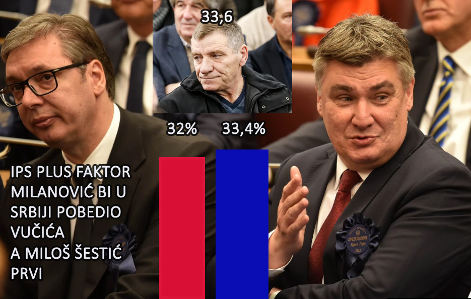 Telefonsko istraživanje je izvršila agencija za ispitivanje javnog mnjenje IPS Faktor PM i došla do zanimljivih rezultata. U ponudi su bila samo tri kandidata. Aktuelni predsednik Srbije Aleksandar Vučić, aktuelni predsednik Hrvatske Zoran Milanović i nasumično izabrana treća osoba izvučena iz šešira, bivši fudbaler Crvene zvezde Miloš Šestić. Ispostavilo se da bi na tim izborima, ako bi se sutra održali, pobedio Miloš Šestić, Milanović bi bio drugi, a Vučić tek treći, Ipak, upozorava Milan Marinković iz Fkatora PM, razlika bi bila veoma tesna.